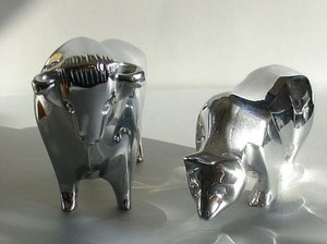 Skulptur bulle und bär das symbol für die börse. Was sind zähler, punkte und indizes? Warum steht der bulle für steigende kurse und der bär für fallende aktienkurse? Warum lässt sich mit fallenden kursen geld verdienen? 27 x 17x 7 cm / figur ca.